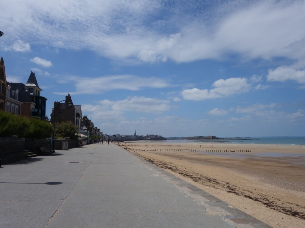 Da wir unbedingt Saint-Malo sehen wollen, machen wir uns am nächsten Tag zufuß auf den Weg. Bei Ebbe ist der Weg nicht ganz so weit, weil man dann quer durch das Watt gehen kann. Auf dem Hinweg haben wir leider Flut…Aber nach elf Kilomtern sind wir am Ziel. Saint-Malo ist ebenfalls sehr touristisch geprägt, was nicht verwundert, denn die Stadt gilt aufgrund ihres historischen Stadtkerns sowie ihrer Festungsanlagen als einer der meistbesuchten Touristenorte Frankreichs. Zudem gibt es in der Bucht von Saint-Malo einen der größten Gezeitenunterschiede Europas, denn bis zu zwölf Meter Differenz liegen hier zwischen Niedrigwasser und Hochwasser. Wir gucken uns die wunderschöne Stadt an, kaufen uns was zu essen und Handtücher, denn wir wollen direkt am Wasser zurückgehen. Als wir völlig erschossen wieder am Wohnmobil ankommen haben wir 21 Kilometer in den Beinen und neue, deutsche Stellplatznachbarn mit einem vier Monate altem Baby. Zusammen verbringen wir einen herrlich entspannten Abend bei einem gemeinsamen Abendbrot!