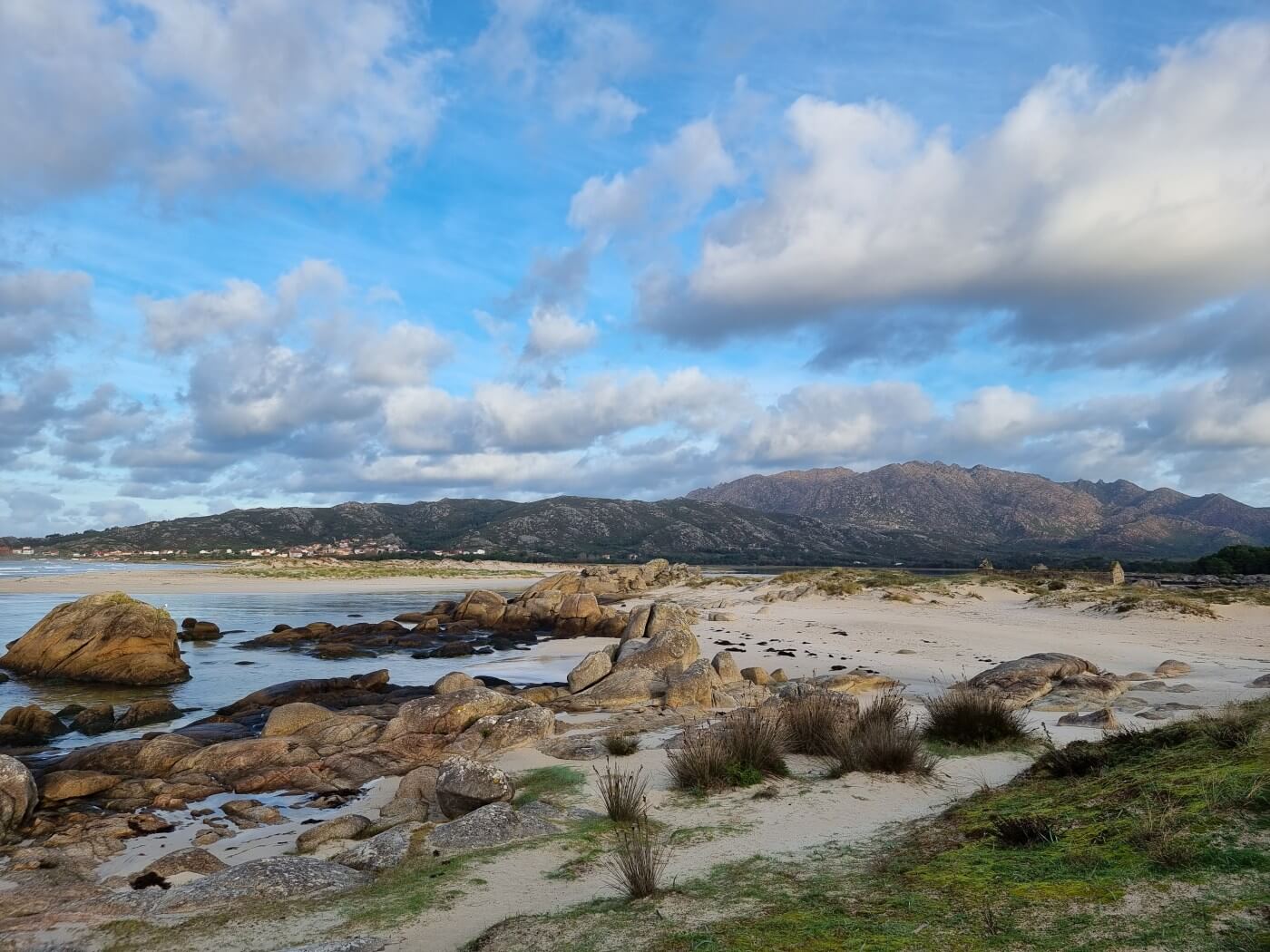 Wir fahren wieder an die Küste, denn die Vorhersage sagt einen Wetterumschwung mit viel Regen, heftigen Sturmböen und sinkenden Temperaturen voraus. Auslöser für den Wetterumschwung sind die Ausläufer eines Hurrikans, der an der amerikanischen Küste gewütet hatte und sich nun über den Atlantik ausbreitet. Diese Naturgewalten wollen wir uns am Strand anschauen und so landen wir auf dem Wohnmobil-Stellplatz am Praia Boca do Rio bei Carnota. Als wir auf dem Stellplatz eintreffen, stehen noch 3 weitere Mobile auf diesem Platz. Nach und nach fahren alle anderen weg und wir stehen komplett allein. Der Stellplatz ist ca. 300 Meter vom Strand entfernt. Dieser Strand ist mit gut 7 Kilometern Länge der längste Strand Galiciens und er ist von der deutschen Zeitschrift „Traumstrände“ unter den 100 schönsten weltweiten Stränden gelistet. Wir schauen uns den Strand erstmal bei Ebbe an und fragen uns, ob wir am richtigen Strand sind. Denn von hier aus kommt man aufgrund der Felsen nicht mal wirklich zum Wasser. Dann verdunkelt sich der Himmel jedoch sehr schnell und wir schaffen es gerade vor dem Regen zurück in den Alpa.