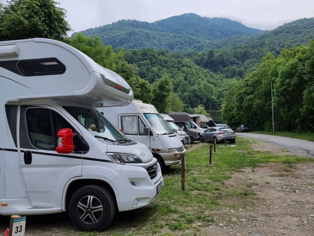 Am Samstag füllt sich der Campingplatz aber in einem Maße, dass nur noch Kuschelcamping möglich ist. Von der Geräuschkulisse, bedingt durch permanent laufende Klimaanlagen oder lautes Fernsehen bei offener Tür oder vor dem Womo, mal ganz abgesehen. Für uns der richtige Zeitpunkt, um weiter zu fahren. Nach so viel Strand und Massentourismus wollen wir jetzt in die Berge. Um 8 Uhr starten wir bei 25°C vom Campingplatz und fahren quer durchs Land ins Piemont. Wir haben uns bereits zuhause Stellplätze rund um den Nationalpark Gran Paradiso herausgesucht. Nach gut sieben Stunden Fahrt erreichen wir den ersten Platz, der so schrecklich ist, dass wir gleich weiterfahren. 20 Kilometer weiter, ins Tal hinein, gibt es einen größeren Stellplatz, der aber hoffnungslos überfüllt ist. Der Campingplatz nebenan ist ebenfalls bereits abgesperrt. Na klasse. Leicht genervt wollen wir die letzten 24 Kilometer zum Talschluss fahren, aber die Straße wird jetzt so eng, dass Begegnungsverkehr kaum mehr möglich ist. Dafür ist uns unser Womo zu schade und schweren Herzens kehren wir um. Wir entscheiden uns, zunächst aus den Bergen heraus zu fahren, da wir für heute einfach genug vom Fahren haben. In Aglie finden wir letztlich einen Platz auf einem riesigen Parkplatz, wo überhaupt keiner steht. Ein Stellplatzschild finden wir allerdings auch nicht. Auch irgendwie komisch, aber wir werden heute Nacht hier bleiben und hoffen, dass wir morgen nicht plötzlich mitten zwischen Marktständen stehen.