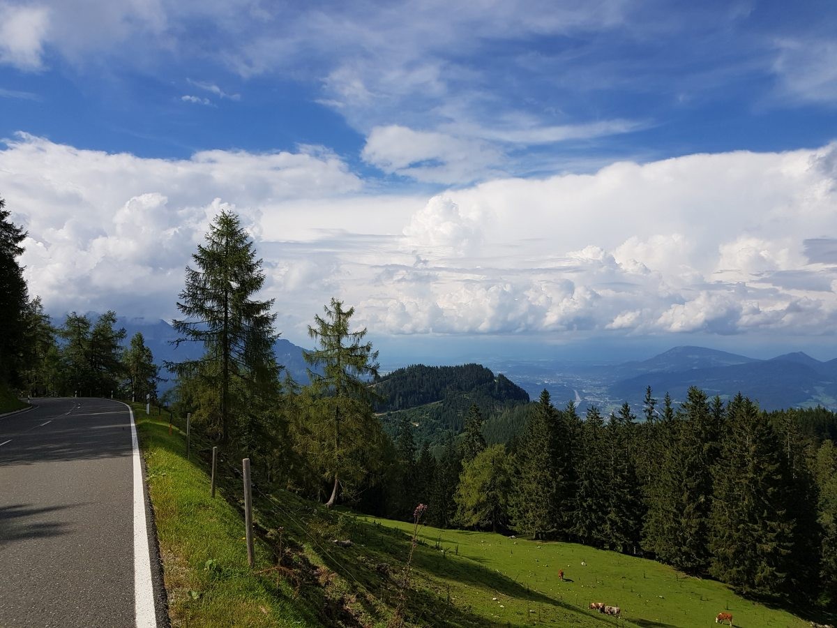 Glücklicherweise führt die Rossfeldstraße fast am Stellplatz vorbei, man hat also schon einen Teil der Steigung geschafft! Dennoch schafft uns das erste Stück am meisten, denn die Steigung liegt jenseits der 15%-Marke.